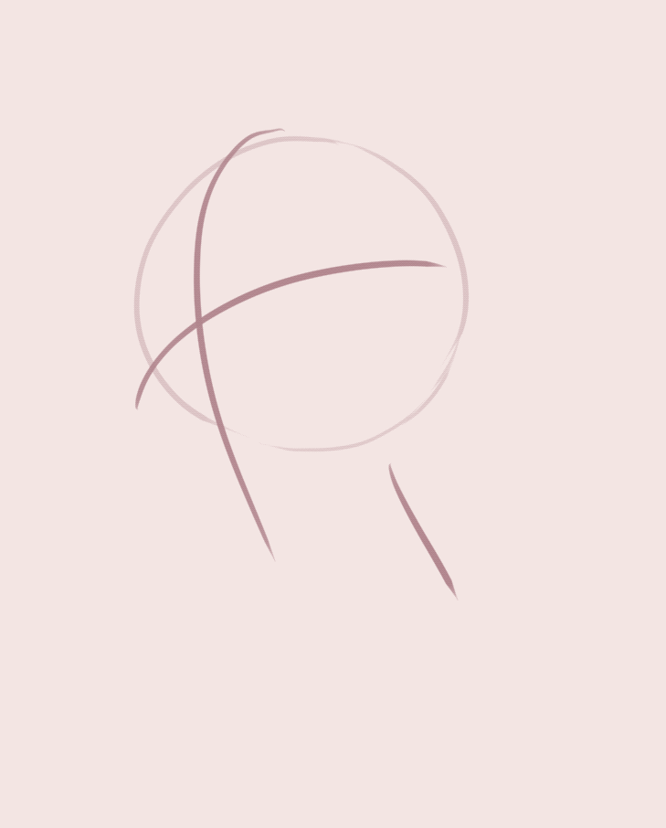 1: Sketching: Use a circle to sketch the skull, and then draw a cross line. This cross will guide the direction of the head.
